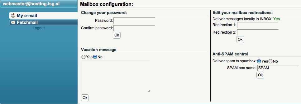 Uporabniki lahko dostopajo do elektronske pošte z uporabo klasičnih odjemalcev ali spletnega vmesnika. Vsak poštni uporabnik ima svojo upravljalsko ploščo, kjer si sam spreminja geslo, nastavitve za nezaželjeno elektronsko pošto, preusmeritve, avtomatična obvestila o nedosegljivosti/dopustu ter celo druge poštne predale iz katerih se pošta agregira.